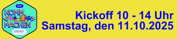 Jedes Jahr im Herbst findet die EU CodeWeek statt. Zum 2. Mal ist das Saarland mit einem eigenen RegioHub dabei. Auf der Seite des RegioHubs findet ihr Veranstaltungen in eurer Nähe!